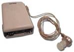 口袋型助聽器 出現較早,體積較大,外觀像一部小型的收音機,配戴在身前,透過一條耳機線或Y線,將聲音輸出送至耳機頭,一般價格較低廉,其體積較大,可提供大功率輸出,適用行動不方便之老人家。 |